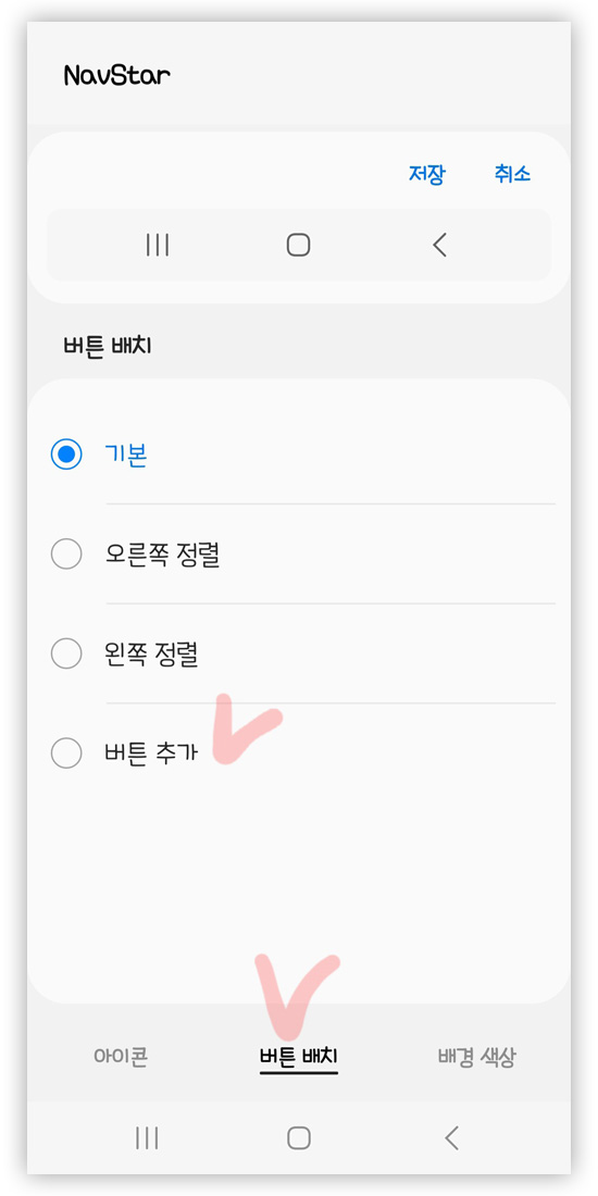 배경화면 꾸미기나 시계 디자인 바꾸기, 핸드폰 어플 테마 바꾸기 등등이 가능한데 그 중에 하나가 하단바에 버튼을 추가하는 기능이다.