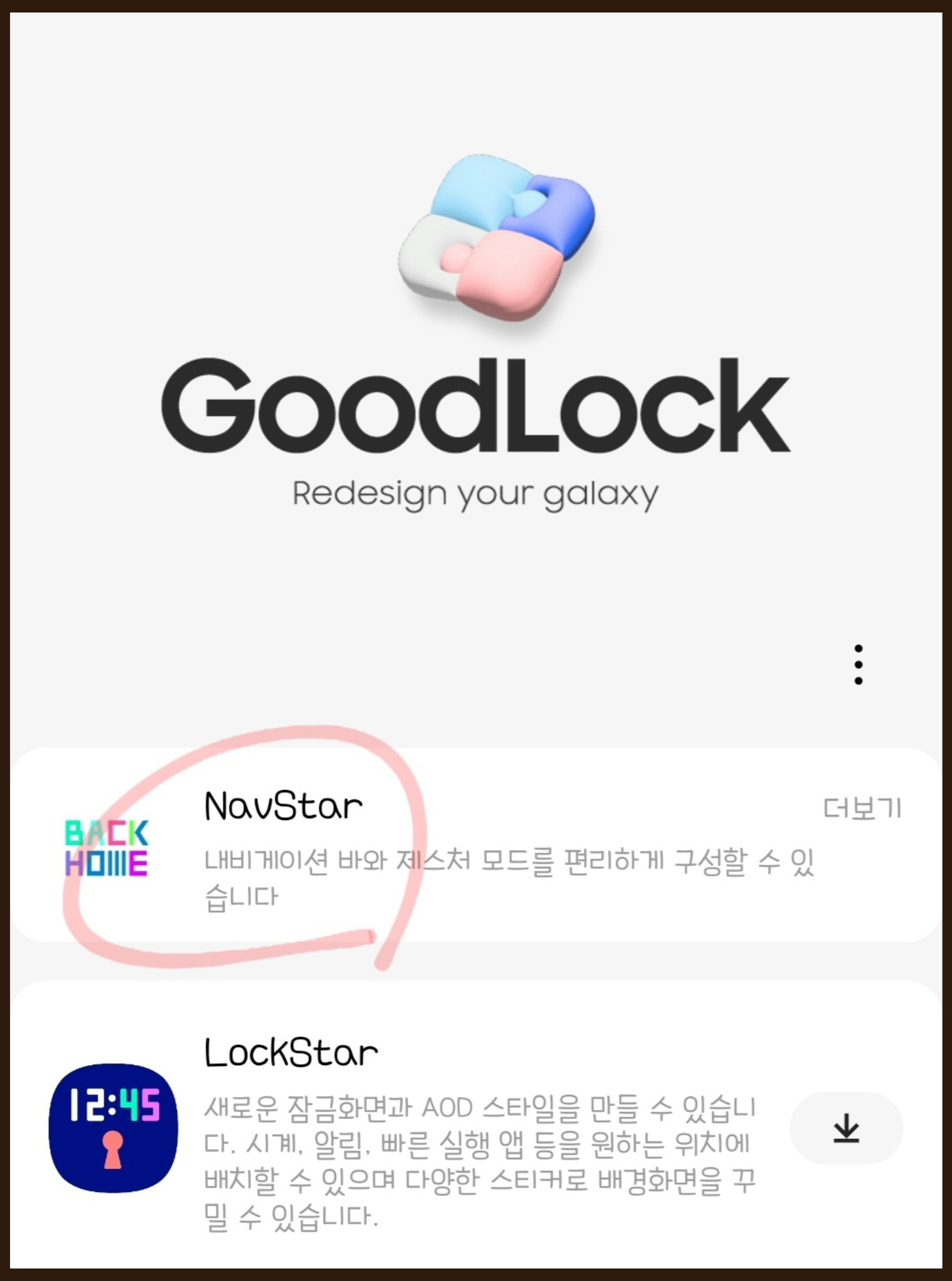 NavStar 앱까지 설치하고, 다시 GoodLock 앱으로 가서 네비스타를 열어주면 아래와 같은 화면이 나온다.