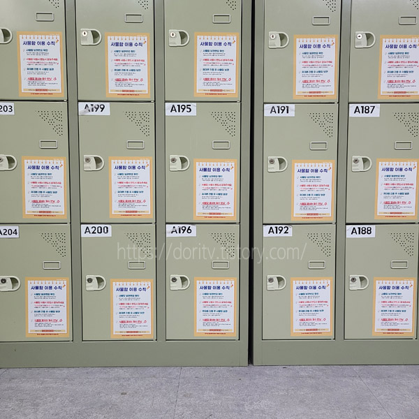 위와 같은 사물함에 핸드폰과 신발 등 개인물품을 보관하면 된다.
