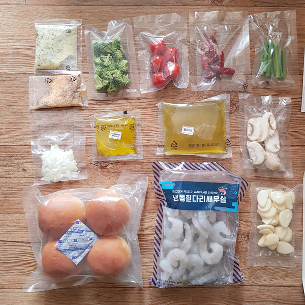 모든 재료가 손질되어서 깜끔하게 포장되어 있다.